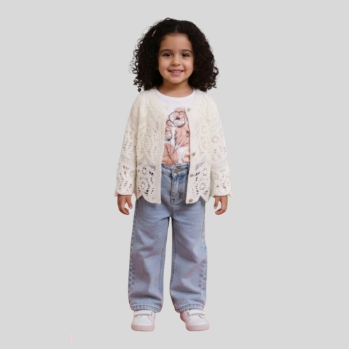 طقم بناتي مع بنطلون جينز — المقاس/العمر: 2y-5y — صنع في تركيا